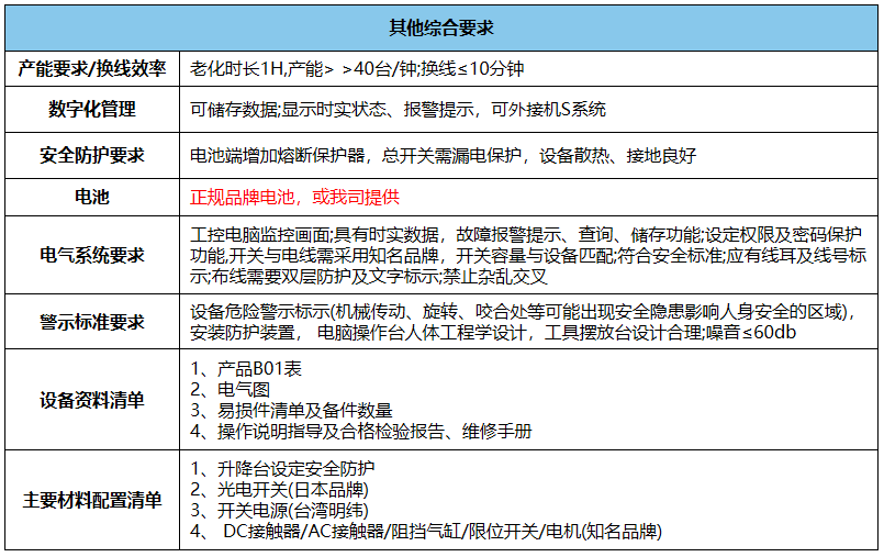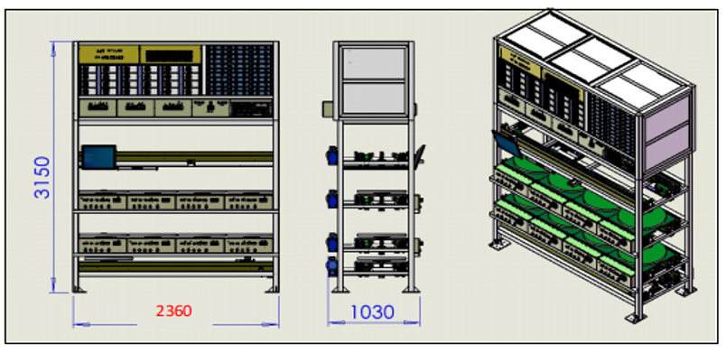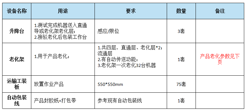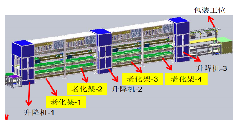 簡(jiǎn)述:32位逆變器在線老化流水線方案采用單體4pcs*2層4個(gè);共計(jì)老化32個(gè)產(chǎn)品;下層帶回板層,上層為老化OK正常流水到包裝線