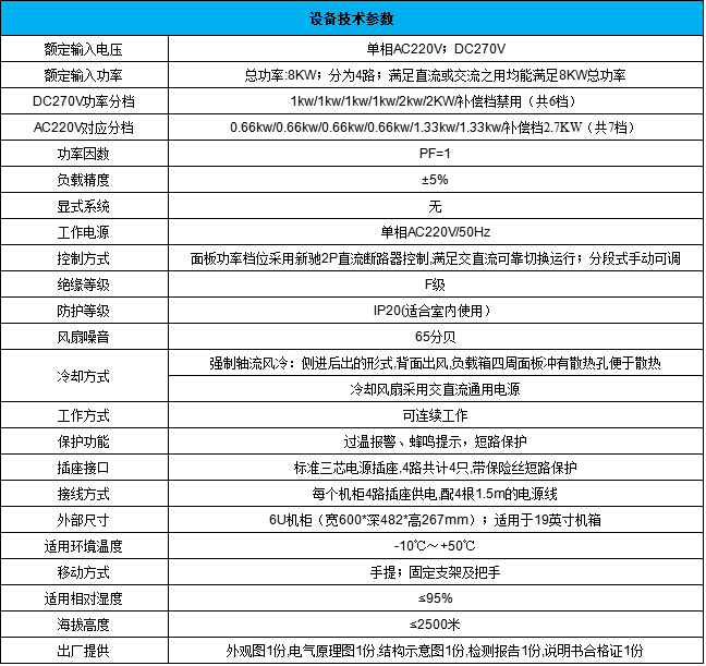 產(chǎn)品編號:VILVA-AC220V/DC270V-8KW負載箱