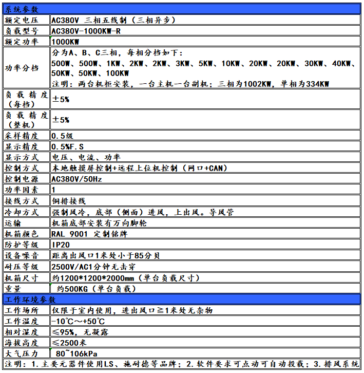 產(chǎn)品規(guī)格:AC380V-1000KW-R交流負(fù)載箱