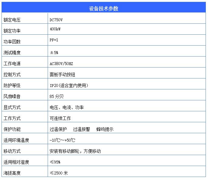 產(chǎn)品規(guī)格:VILVA-DC750V-400KW-R直流大功率負(fù)載箱
