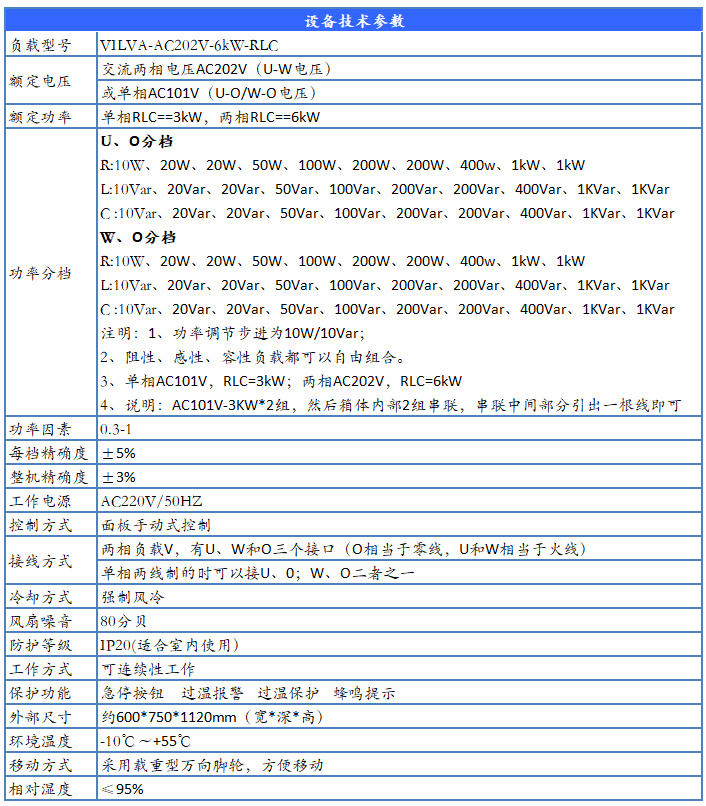 產(chǎn)品規(guī)格:VILVA-AC202V-6KW-RLC負載箱