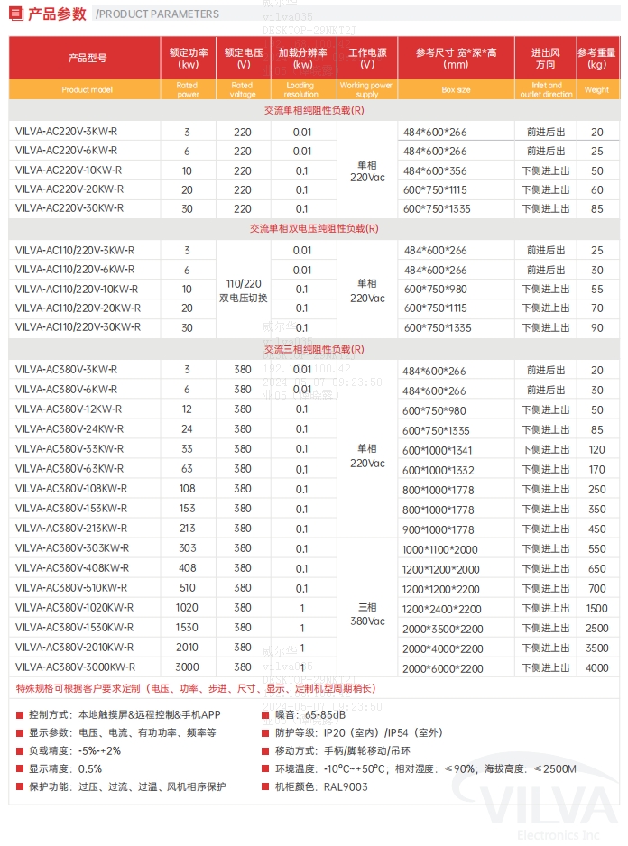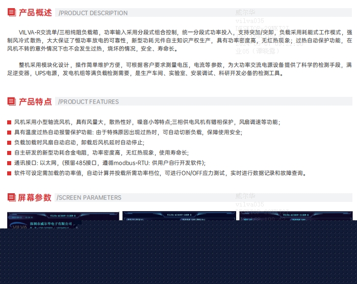 產(chǎn)品規(guī)格:VILVA-R交流單/三相純阻負載箱