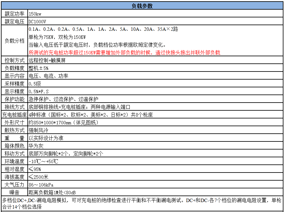 產(chǎn)品規(guī)格:直流充電樁測試負(fù)載(150kw/配國/歐/美/日標(biāo)雙槍座)