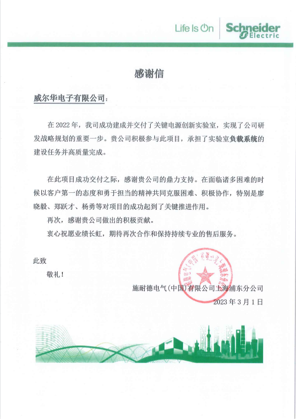 為世界500強(qiáng)企業(yè)助力發(fā)展;威爾華2022年成功交付了<關(guān)鍵電源創(chuàng)新實(shí)驗(yàn)室>兆瓦級(jí)測(cè)試平臺(tái)和負(fù)載系統(tǒng);